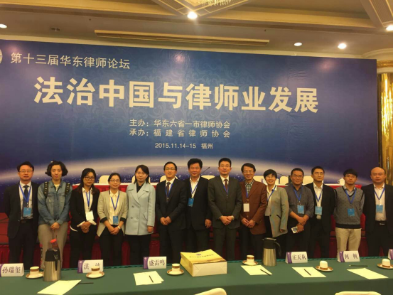 2015年11月14日至15日,“第十三届华东律师论坛”在福建省福州市西湖大酒店隆重召开。我所卢海霞律师及全省共计14位律师代表在安徽省律协张晓健副会长的带领下组成安徽律师代表团,参加此次论坛。最高院何帆法官以“深化司法改革对律师业的影响”为主题发表演讲,从司法改革的视角谈律师业发展的前景。福建社科院党组书记、副院长以“书卷气、长者风、裁断力、慈爱心”给予律师高度的评价及勉励。