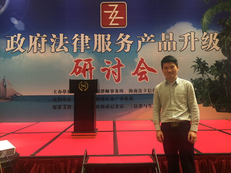 2016年12月1日至5日,由北京易和律师事务所、海南法立信律师事务所主办的《政府法律服务产品升级研讨会》在海口举行。我所委派茅红星律师参与研讨会,会议期间针对集体土地自住腾退、城市棚户区改造、律师参与立法、行政执法证据风险、政府重大决策风险评估等方面进行深入学习与交流。