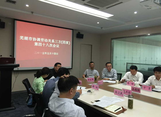 2015年5月14日下午,芜湖市协调劳动关系三方(四家)第48次联席会议,在本所召开。市企业联合会、市工商联、市人社局、市总工会有关领导、相关职能部门负责人及本所律师参加了会议。