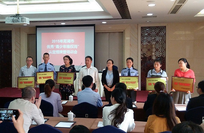 2015年10月22日上午,我所古立平主任参加由芜湖团市委主办的优秀“青少年维权岗”授牌仪式。我所近几年在社区、学校、企业单位等场所开展了多种形式的青少年维权宣传工作,此次被授予优秀“青少年维权岗”是对我所在青少年维权工作方面的高度确定。