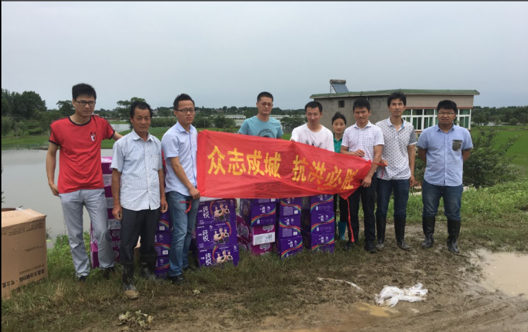 近日,芜湖市县区遭受洪水侵袭,损失重大,灾区急需救援。为体现“一方有难,八方支援”社会美德,2016年7月6日安徽纬纶律师事务所全所律师自发捐赠,最终募集资金13849元。我所将其中7000元交由芜湖市律师协会统一捐赠。将剩余6849元采购紧缺物资(饮用水、速食面、防潮垫、驱蚊水)并在2016年7月7日上午由我所茅红星、夏厚本、董泽民、方闲超、陶月红五名律师携带采购物资驱车赶往南陵县许镇内涝地区,将救灾物资交付接收点。