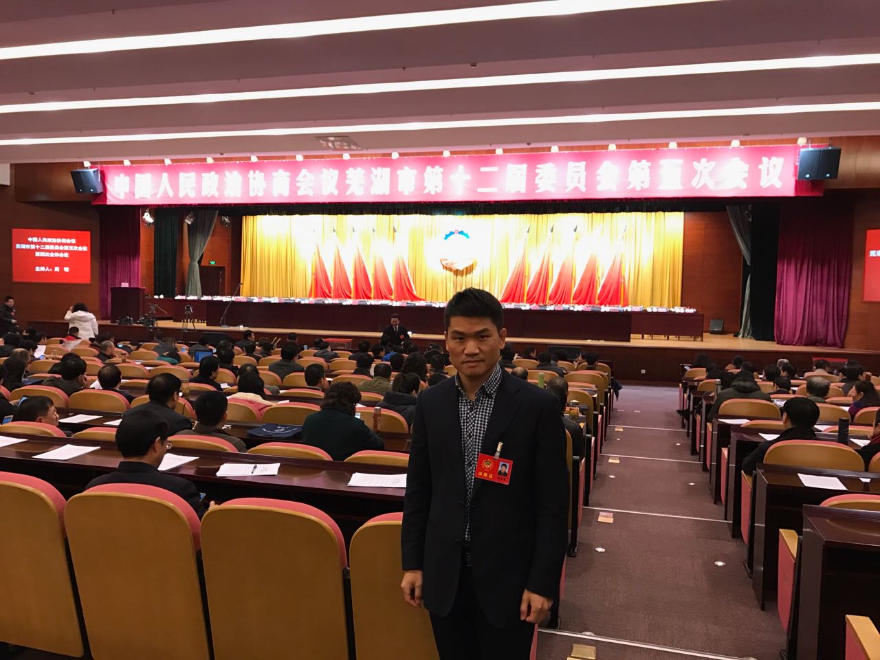 2017年1月10日,芜湖市政协十二届五次会议在市政务中心举行第三次全体会议,市政协主席胡邦明,副主席吴万春、孙国正、杨高、崔执凤、汪健、周明、方国华,市委常委政法委书记汪华东出席会议。