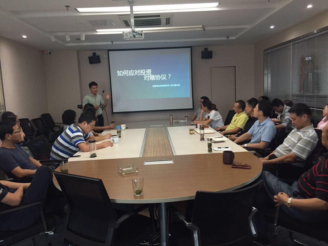 2017年9月16日,纬纶所两周一次的学习会议持续召开中,此次学习是由我所执行合伙人茅红星律师为大家讲解关于如何应对投资对赌协议。