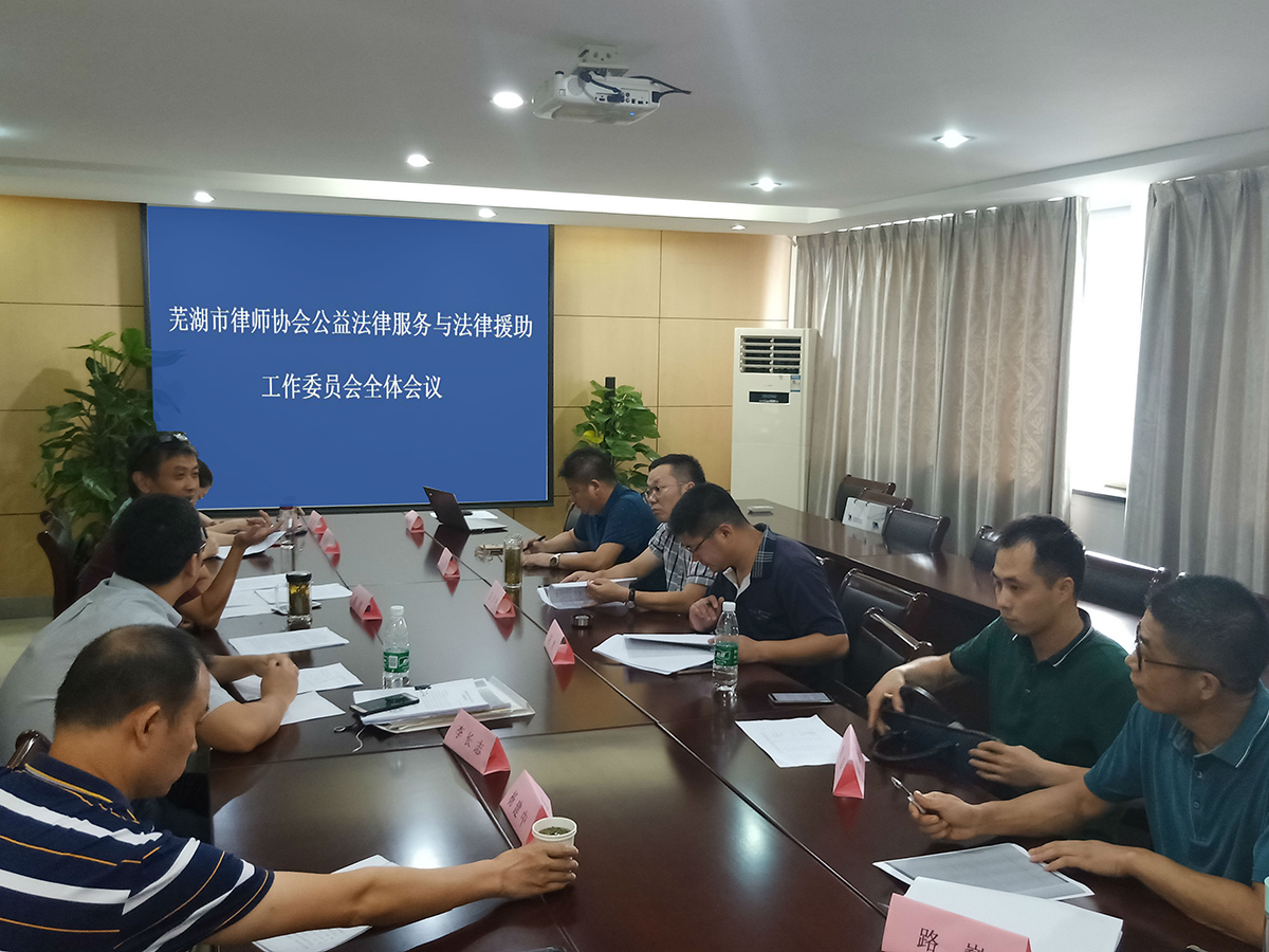 8月15日下午,芜湖市律师协会公益法律服务与法律援助工作委员会第一次全体会议在黄山西路司法局业务用房七楼会议室召开。会议由委员会主任古立平律师主持,全体委员与会参加。