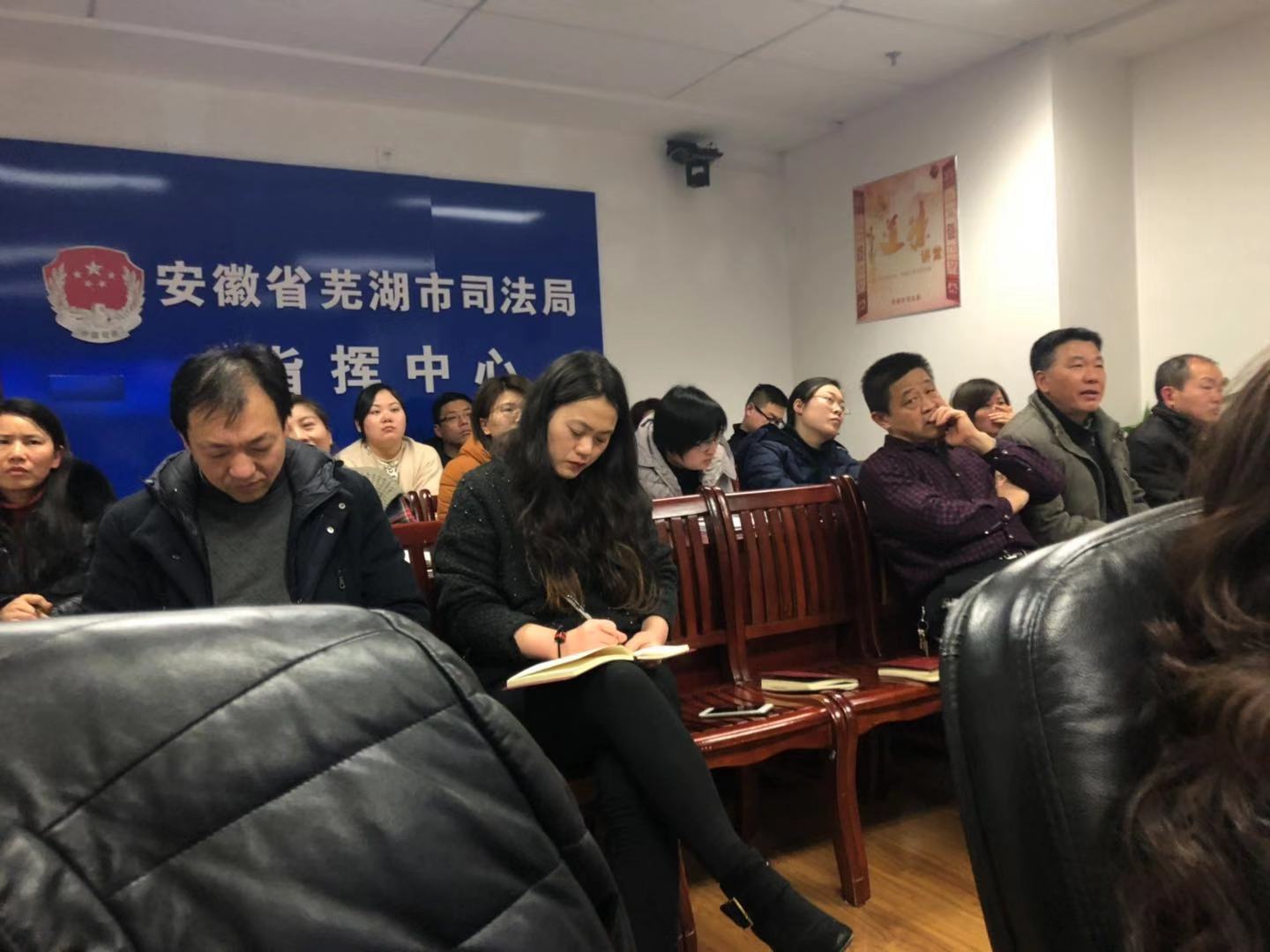 2019年2月21日下午,全国公共法律服务工作会议在广东省广州市召开。安徽纬纶律师事务所高级合伙人古立平律师应邀参加芜湖市司法局组织的全国公共法律服务工作电视电话会议。