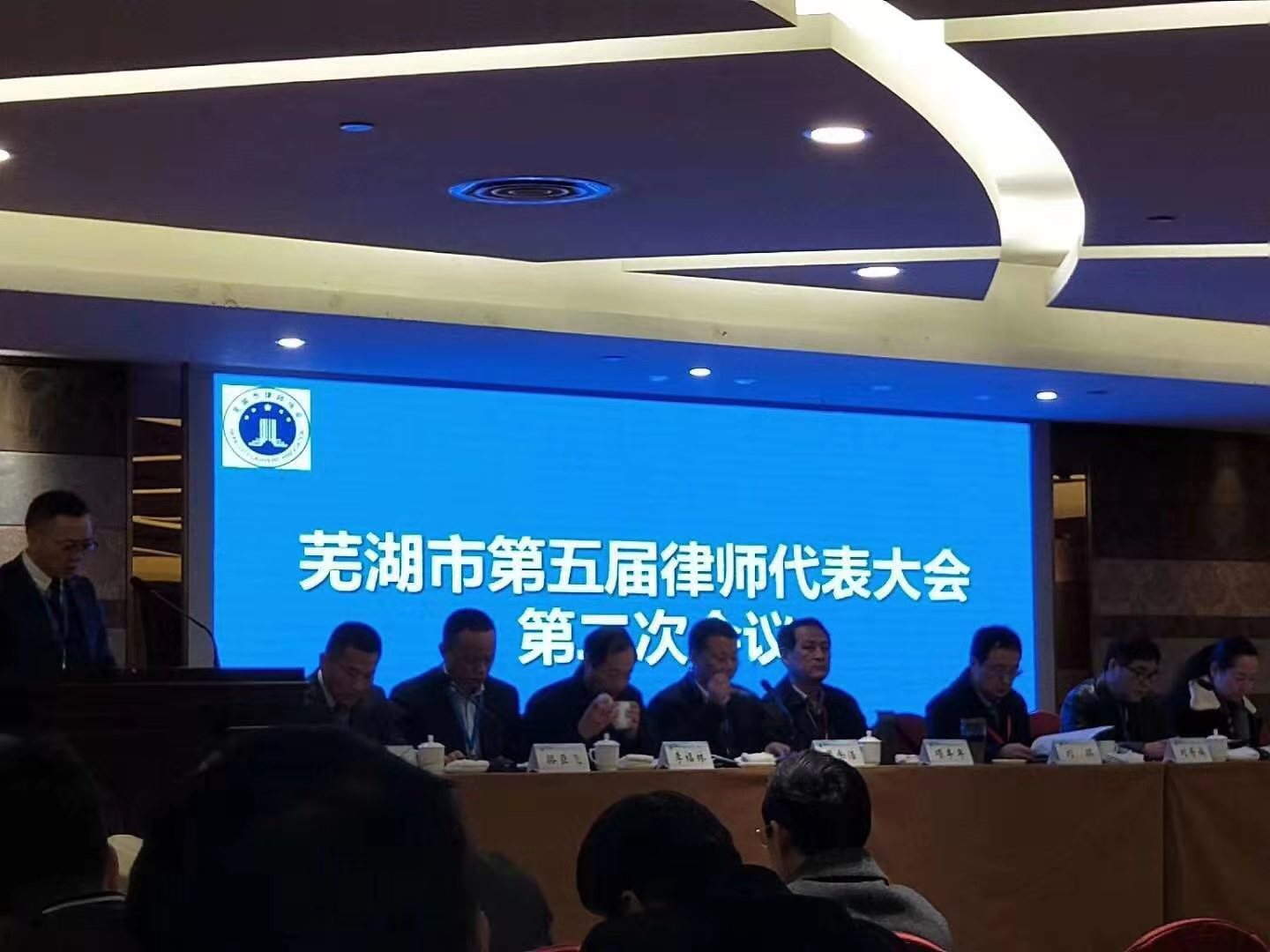 2019年3月3日,芜湖市律师协会召开五届四次常务理事会、二次理事会及第二次代表大会。安徽纬纶律师事务所高级合伙人古立平律师作为芜湖市律师协会副会长全程参会;