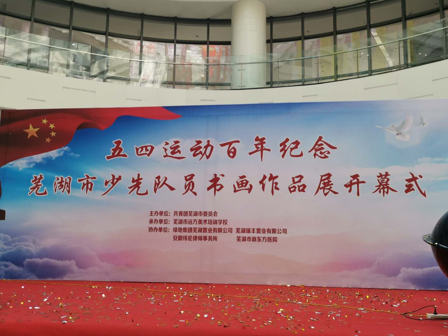 为纪念五四运动一百周年,由共青团芜湖市委员主办、芜湖市远方美术学校,安徽纬纶律师事务所协办的“纪念五四运动一百周年,市少先队员书画展”于2019年5月4日在我市绿地缤纷城一楼展出,此次展期15天,共展出200幅优秀作品。