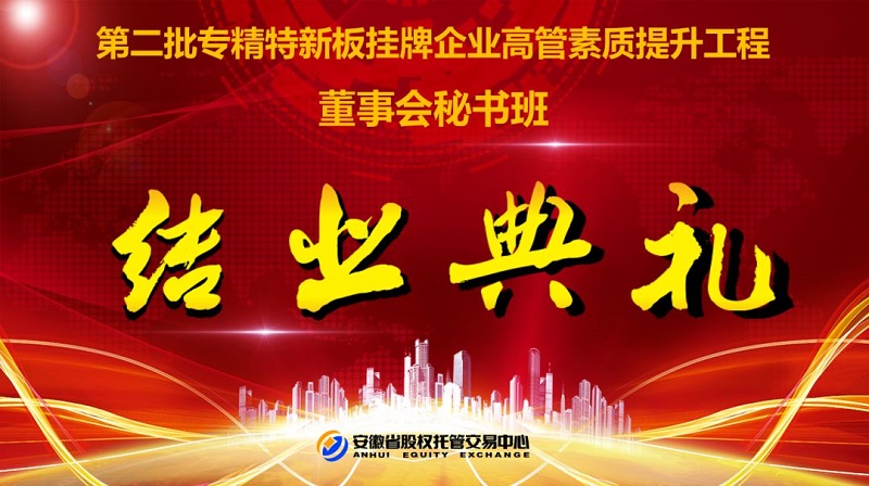 2019年7月26日,由安徽省股权托管交易中心有限责任公司主办的“第二批专精特新板挂牌企业董事会秘书班结业典礼暨走进上市公司活动”在安徽省高速开元国际大酒店举办。